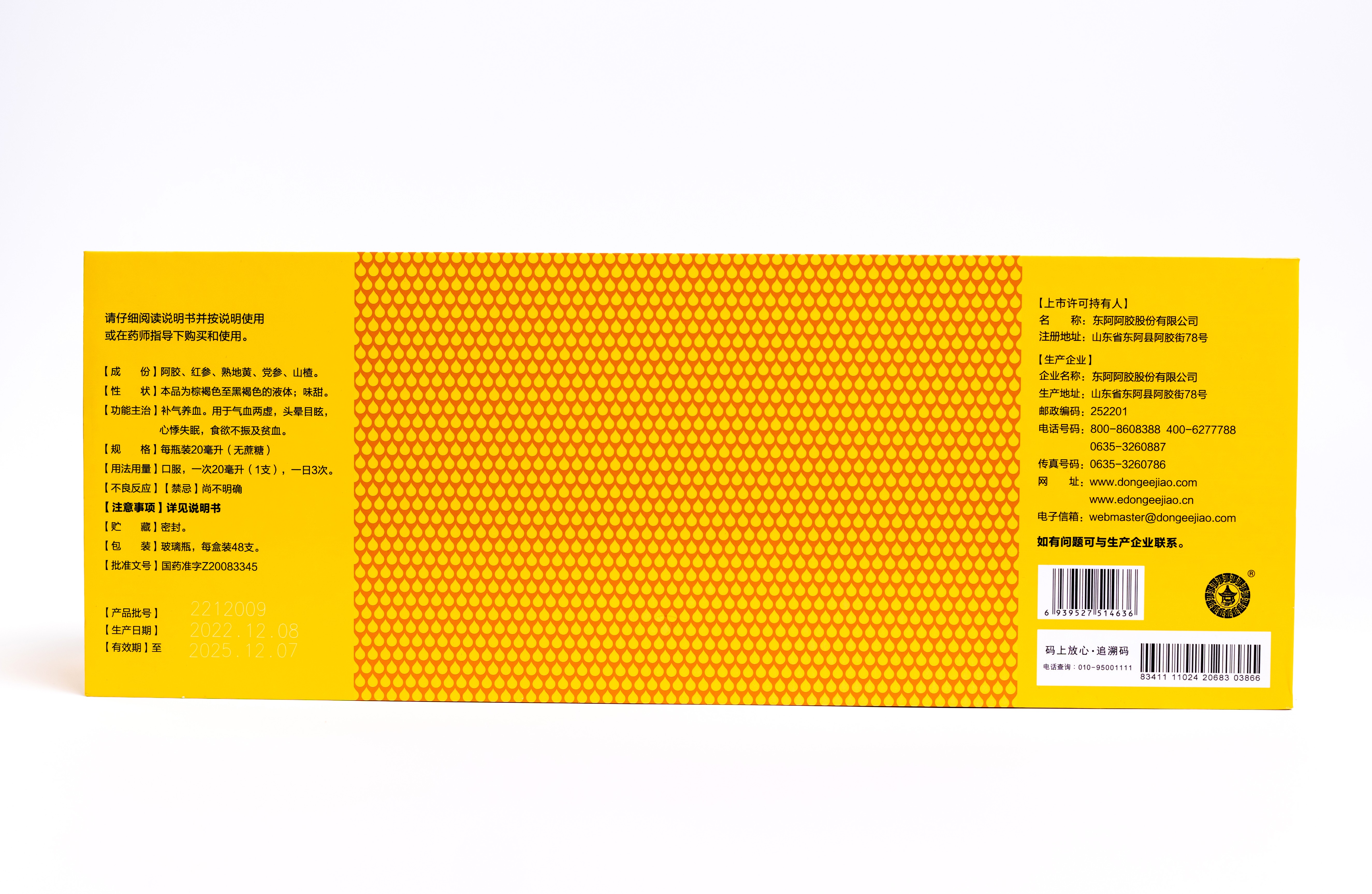 成分:阿胶、红参、熟地黄、党参、山楂。