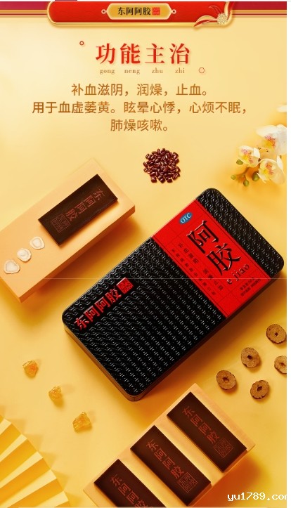 性状:本品呈长方形块,方形块成丁状棕色至黑褐色,有光泽,质硬而脆,断面光亮,碎片 对光照视呈半透明状。气微,味微甘。味甘,性平,无毒;归肺、肝、肾经。 适应症:补血滋阴、润燥、止血。用于血虚萎黄,眩晕心悸、心烦不眠、肺燥咳嗽。根据 2020 年版《中国药典》,其中适应症根据阿胶所属非处方药/处方药/保健品类目不同具备不同的 适应症功能,另有处方适应症:用于血虚萎黄,眩晕心悸,肌痿无力、心烦不眠、虚风内动、 肺燥咳嗽、劳嗽咳血、吐血尿血、便血崩漏、妊娠胎漏。